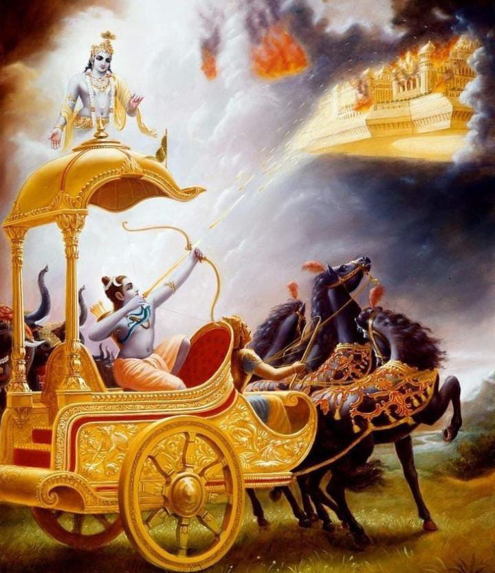 भगवान शिव ने तब अपना विशाल धनुष चढ़ाया और भगवान विष्णु रूपी एक ही बाण से तीनों पुरों को भस्म कर दिया।