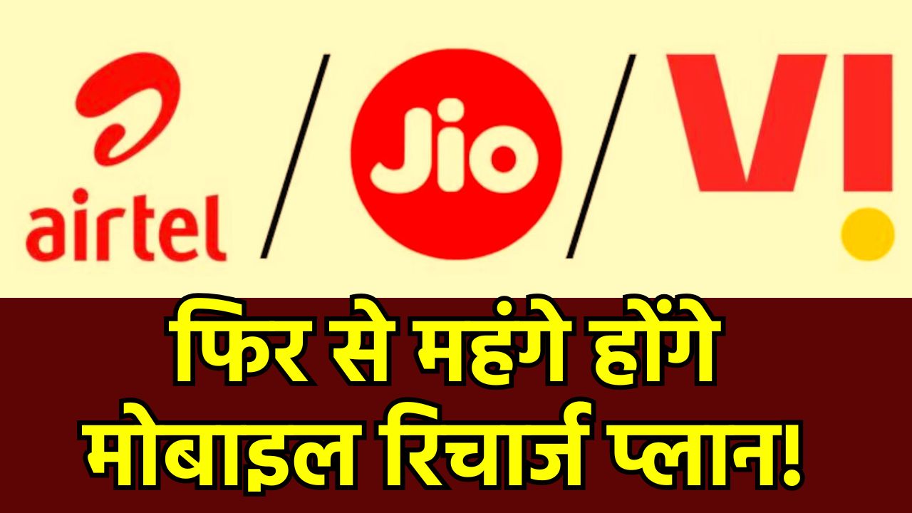 रिलायंस जियो, एयरटेल और वोडाफोन आइडिया जैसी बड़ी टेलीकॉम कंपनियां इस साल के अंत तक (दिसंबर 2025 तक) मोबाइल रिचार्ज प्लान के दामों में एक बार फिर बढ़ोतरी कर सकती हैं।