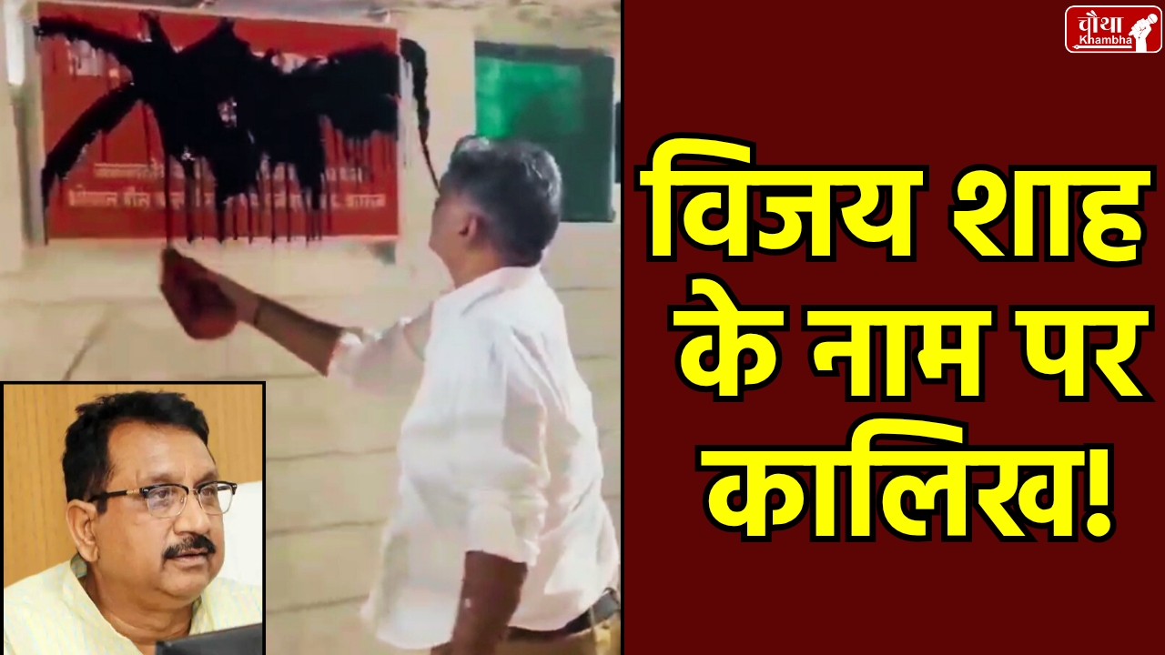 BJP सरकार के मंत्री विजय शाह द्वारा “कर्नल सोफिया कुरैशी को आतंकवादियों की बहन” बताने के विवादित बयान को लेकर कांग्रेस नेता मनोज शुक्ला ने साथियों के साथ उनके बंगले पहुंचकर नेम प्लेट पर कालिख पोती!