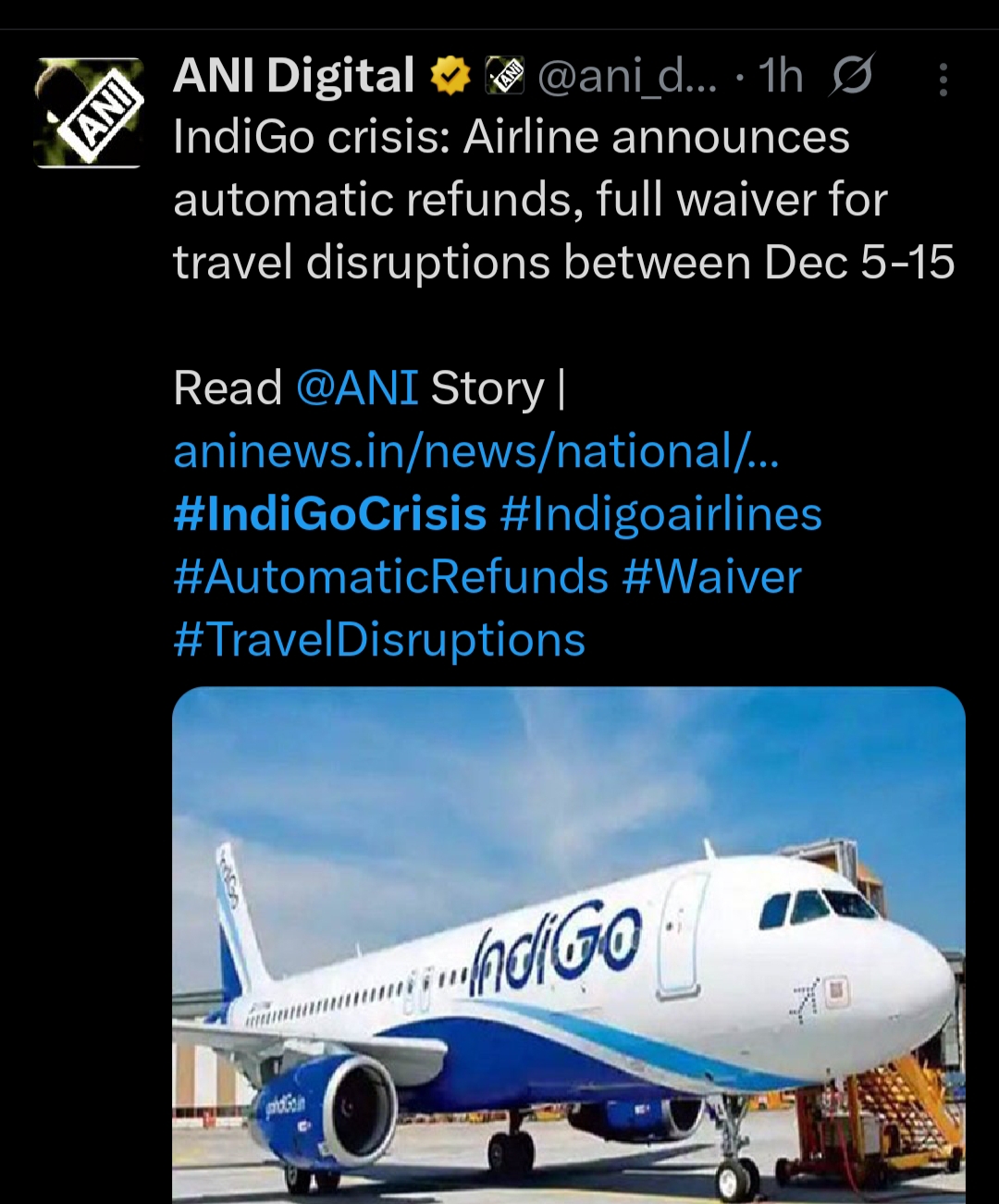 इंडिगो को 7 दिसंबर 2025, रात 8 बजे तक सभी लंबित रिफंड का भुगतान करना अनिवार्य कर दिया गया है।
