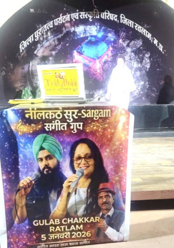 Neelkanth Sur Sargam Ratlam- भोपाल से आए प्रतिष्ठित सांस्कृतिक दल नीलकंठ सुर सरगम संगीत ग्रुप ने गुलाब चक्कर परिसर में अपनी भव्य प्रस्तुति से रतलाम के संगीत इतिहास में नया अध्याय जोड़ दिया।