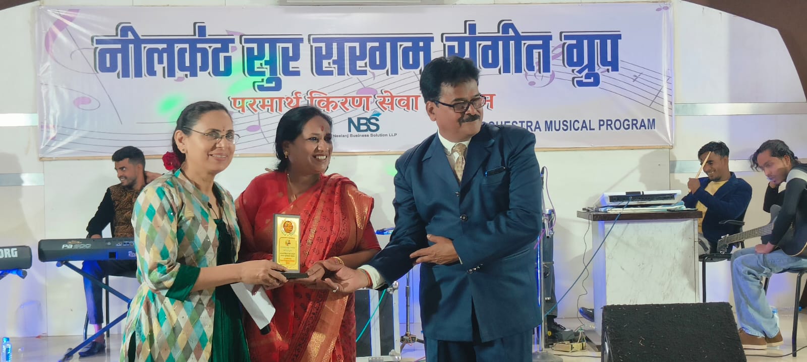 कार्यक्रम के मुख्य अतिथि माननीय विधायक श्री रामेश्वर शर्मा जी ने मंच से नीलकंठ सुर सरगम संगीत ग्रुप की खुलकर प्रशंसा करते हुए इसे “भोपाल का सबसे बड़ा और सबसे सशक्त संगीत समूह” का खिताब प्रदान किया।