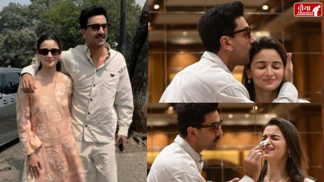 इस मौके पर जहां रणबीर कपूर ऑल व्हाइट लुक में नजर आए। वहीं आलिया ने पीच कलर का सुंदर सा कुर्ता पहना हुआ था।