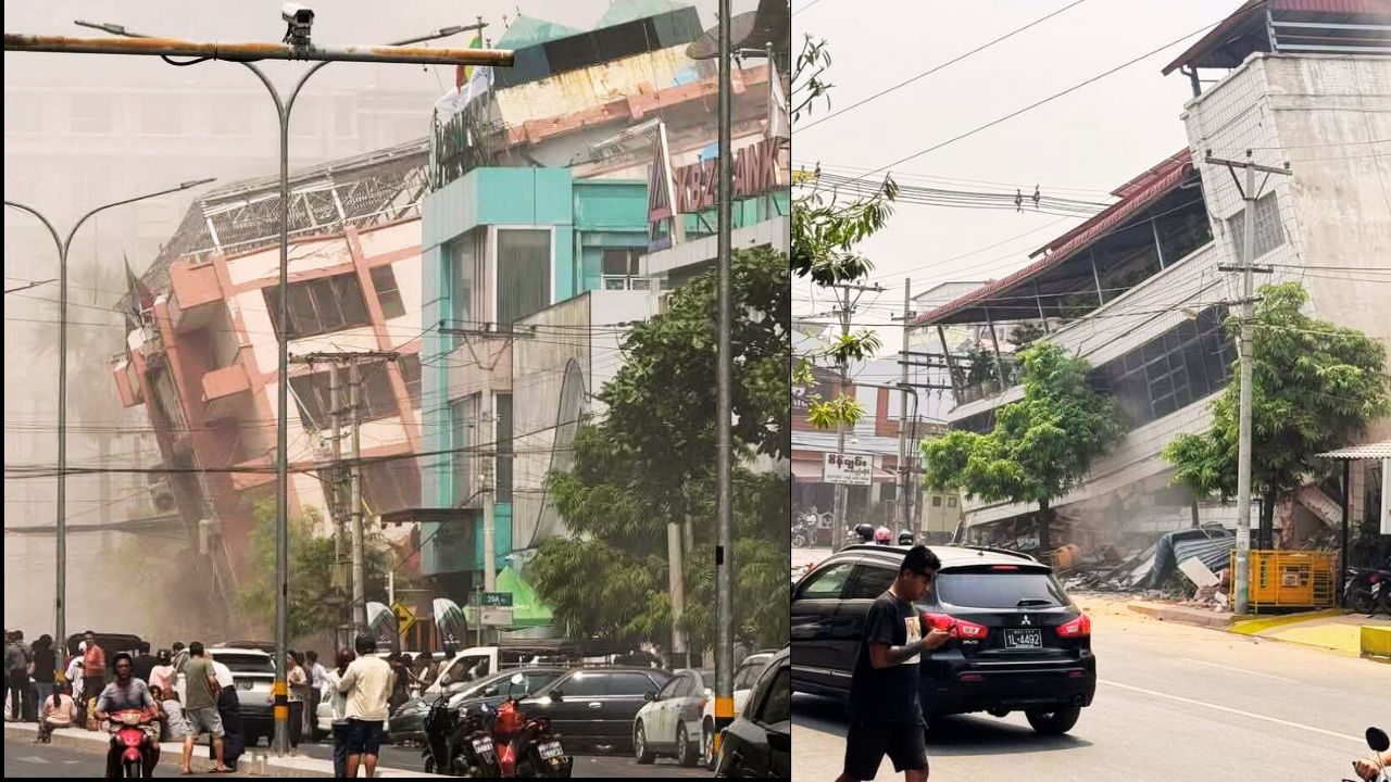 भूकंप की वजह से बैंकॉक में एक गगनचुंबी इमारत भरभराकर ढह गई। कई इमारतों को भी नुकसान पहुंचा है।