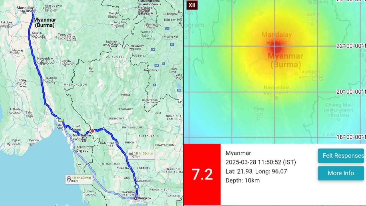 जर्मन रिसर्च सेंटर फॉर जियोसाइंसेज (GFZ) के मुताबिक, भूकंप का केंद्र 10 किलोमीटर गहराई में था और इसका केंद्र मांडले शहर के पास स्थित था।
