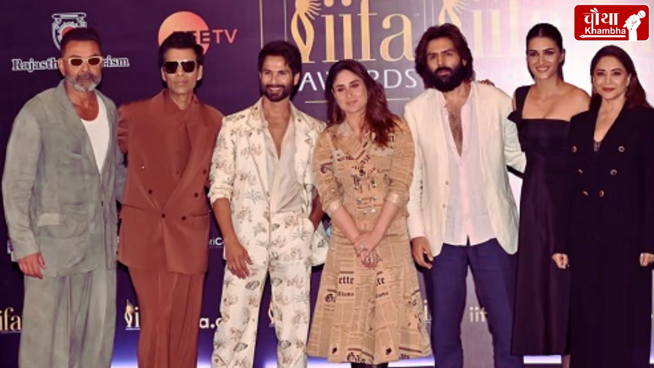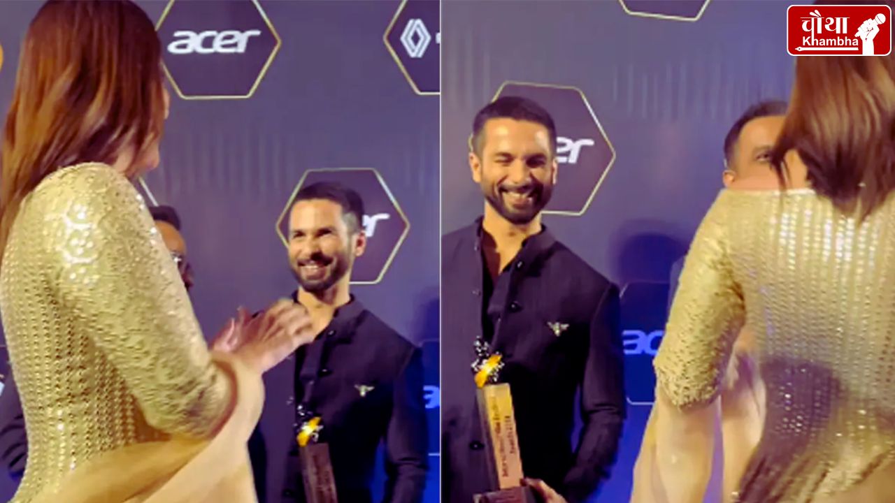 इस दौरान दोनों काफी खुश दिख रहे थे। शाहिद-करीना के अलावा स्टेज पर करण जौहर, कार्तिक आर्यन और कृति सेनन जैसे स्टार्स भी थे लेकिन ये एक्स कपल एक-दूसरे से ही बात करने में बिजी थे।